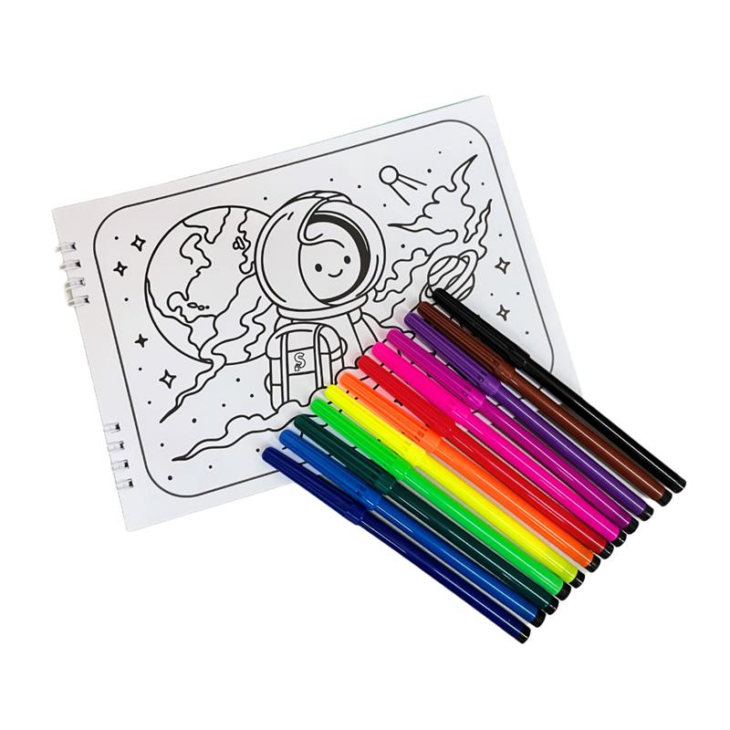 O Kit Selb Goods conta com um livro de colorir personalizado da Selbetti, com ilustrações exclusivas que refletem a identidade da empresa de forma criativa e leve. Para completar a experiência, o kit acompanha um conjunto de canetinhas coloridas, incentivando momentos de descontração, criatividade e bem-estar.